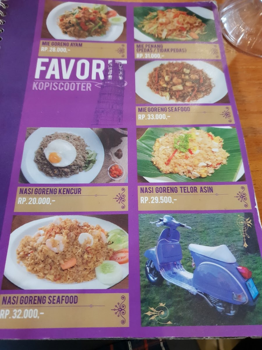 The café's minimal drink options might leave some wanting more, but the focus here is undoubtedly on the food, and it is clear from customer feedback that what they do offer is delightful. Manz TIHAGI enthusiastically declares Kopi Scooter to be a must-visit for its delicious dishes at reasonable prices, and suggests arriving early to ensure you don’t miss out on their sought-after Hainan Rice, which often sells out quickly as praised by Pryta Aditama.